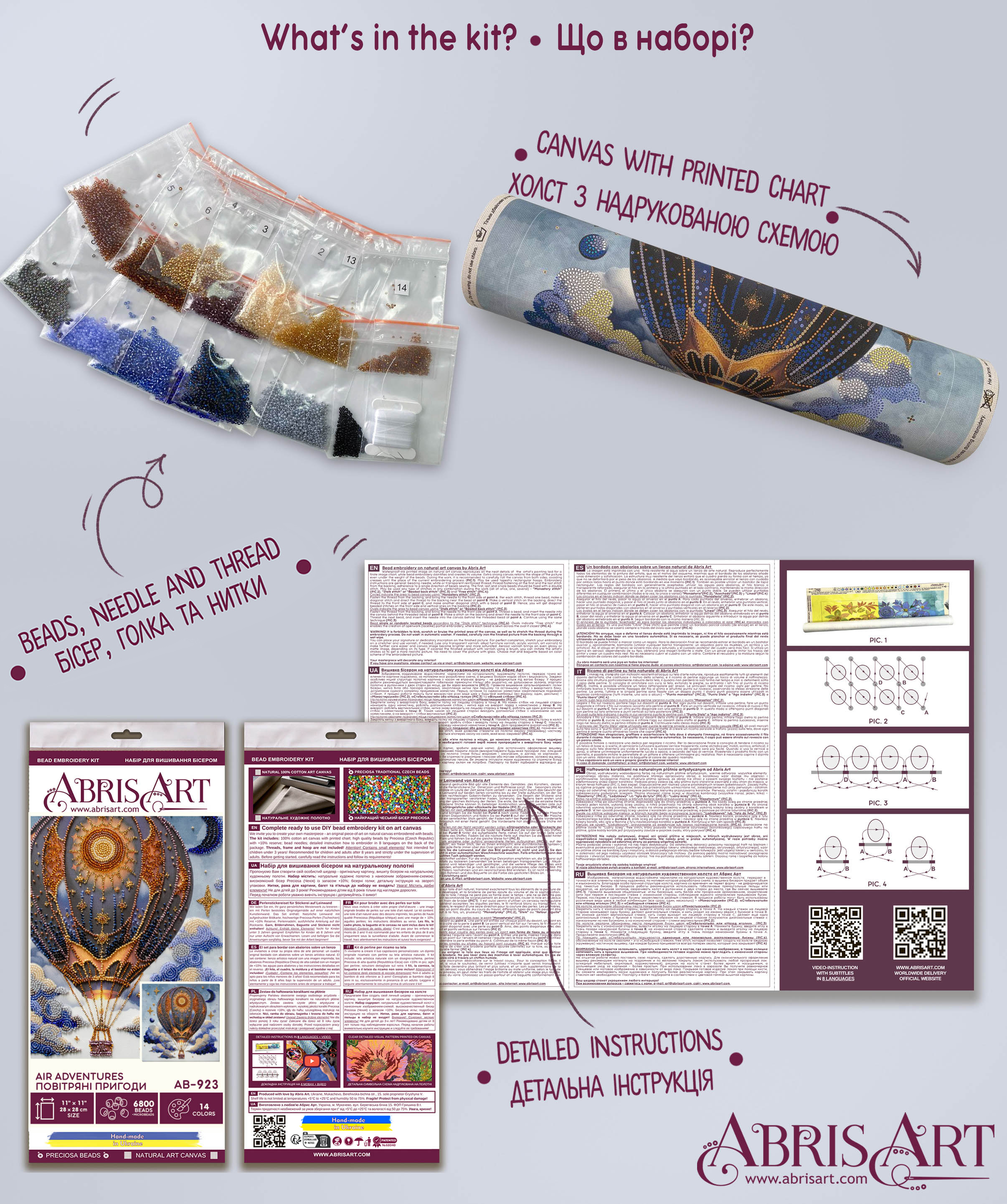У комплекті зазвичай є натуральний холст із нанесеною схемою, чеський бісер Preciosa Ornela, бісерні голки та зрозуміла покрокова інструкція — усе, що потрібно навіть початківцю.