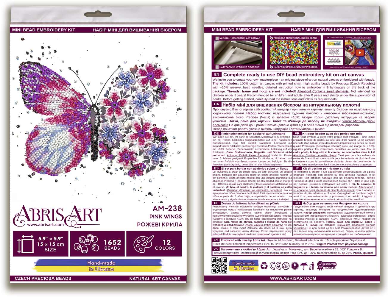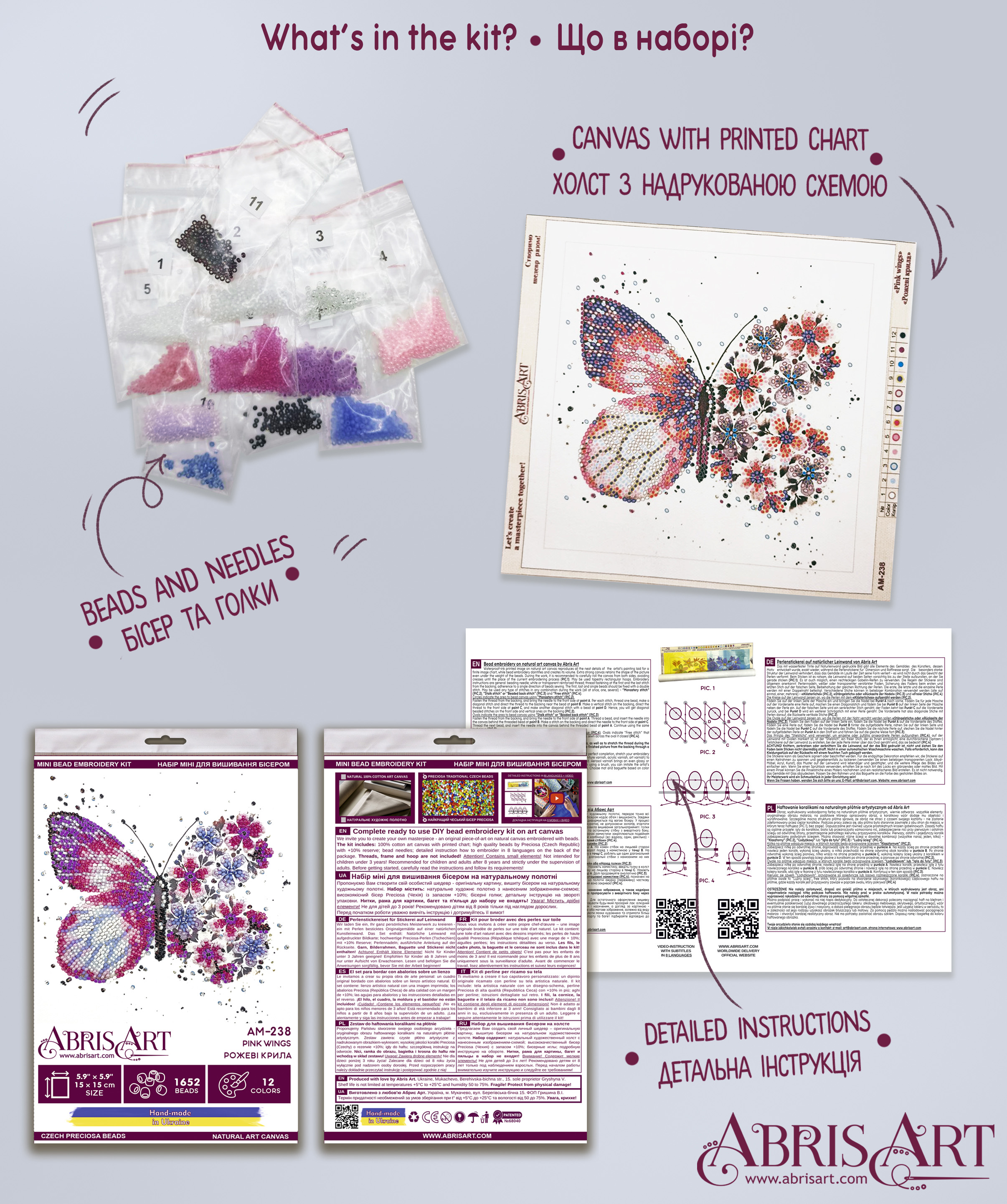 У комплекті зазвичай є натуральний холст із нанесеною схемою, чеський бісер Preciosa Ornela, бісерні голки та зрозуміла покрокова інструкція — усе, що потрібно навіть початківцю.