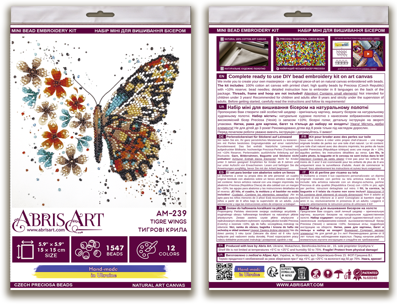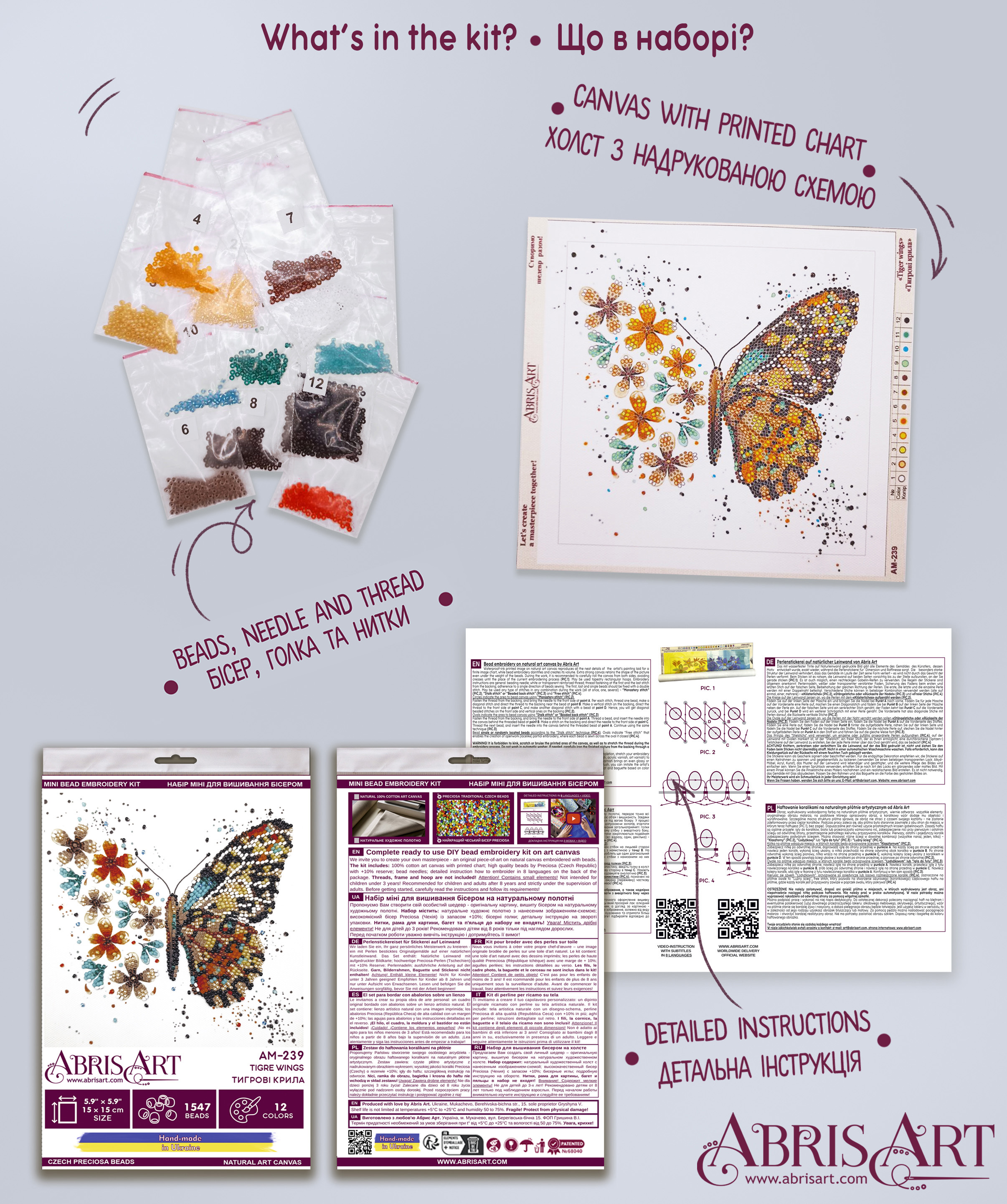 У комплекті зазвичай є натуральний холст із нанесеною схемою, чеський бісер Preciosa Ornela, бісерні голки та зрозуміла покрокова інструкція — усе, що потрібно навіть початківцю.