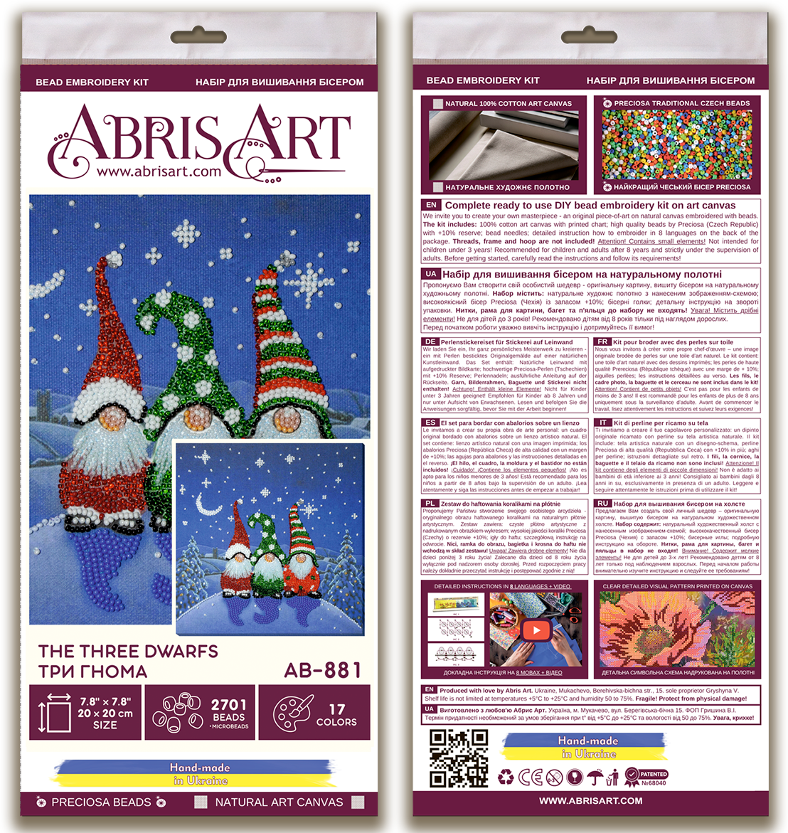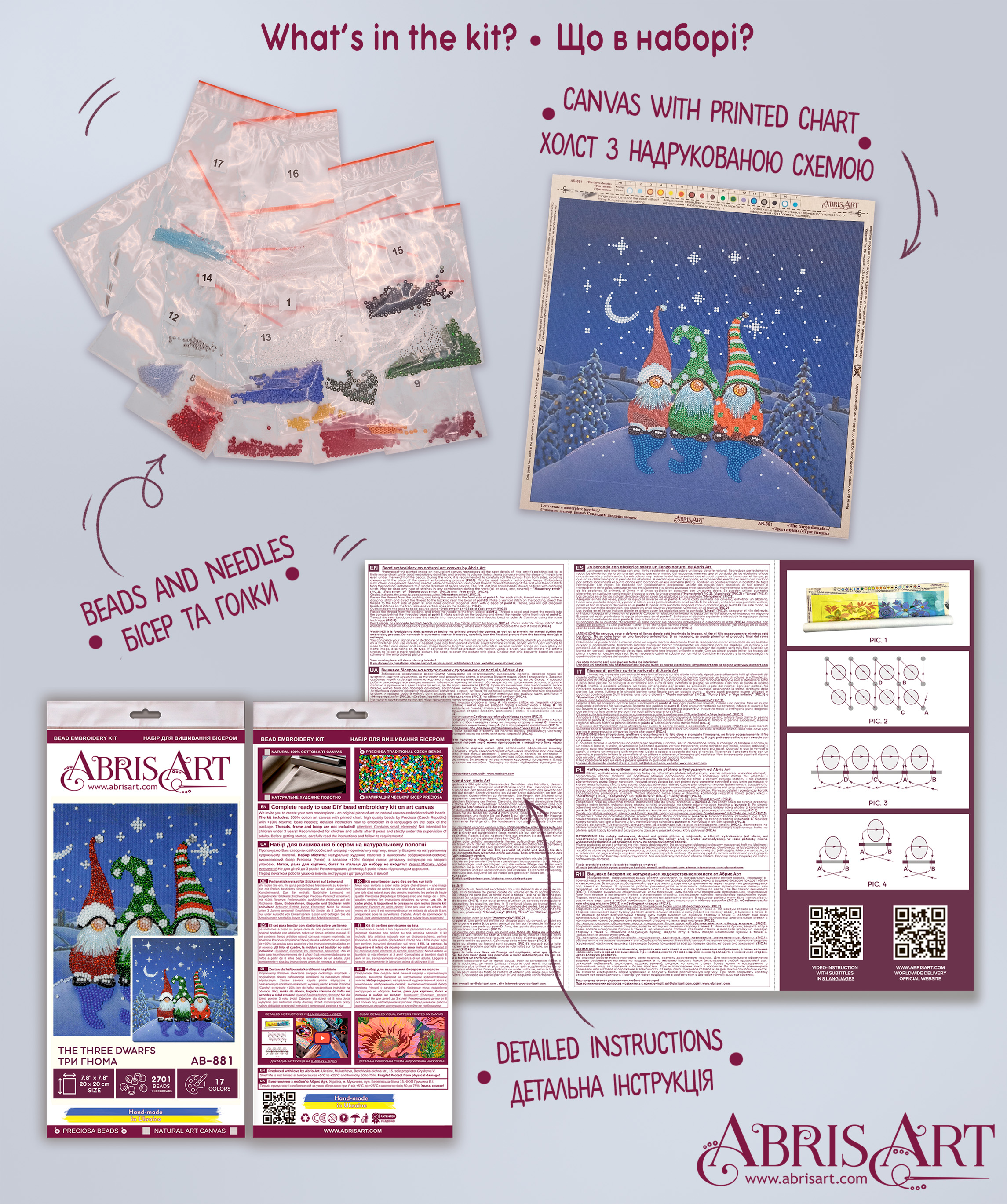 У комплекті зазвичай є натуральний холст із нанесеною схемою, чеський бісер Preciosa Ornela, бісерні голки та зрозуміла покрокова інструкція — усе, що потрібно навіть початківцю.