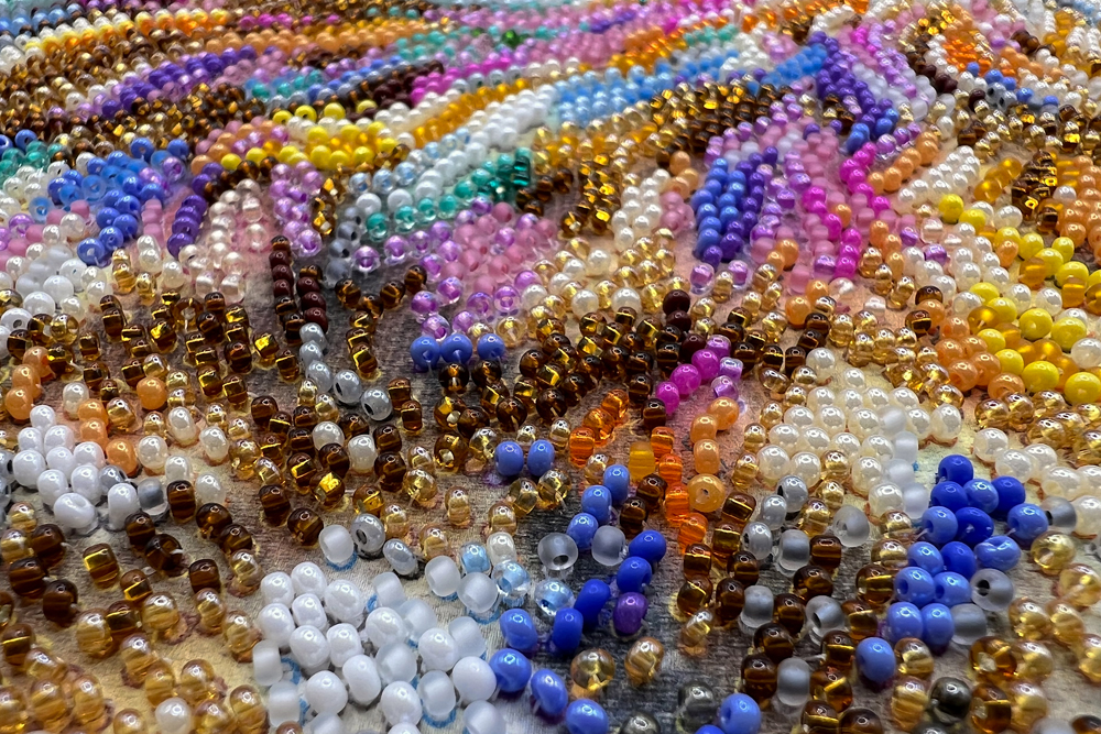 Яскраві відтінки бісеру та продумана символіка на полотні роблять процес захопливим і медитативним, а результат — естетично довершеним.