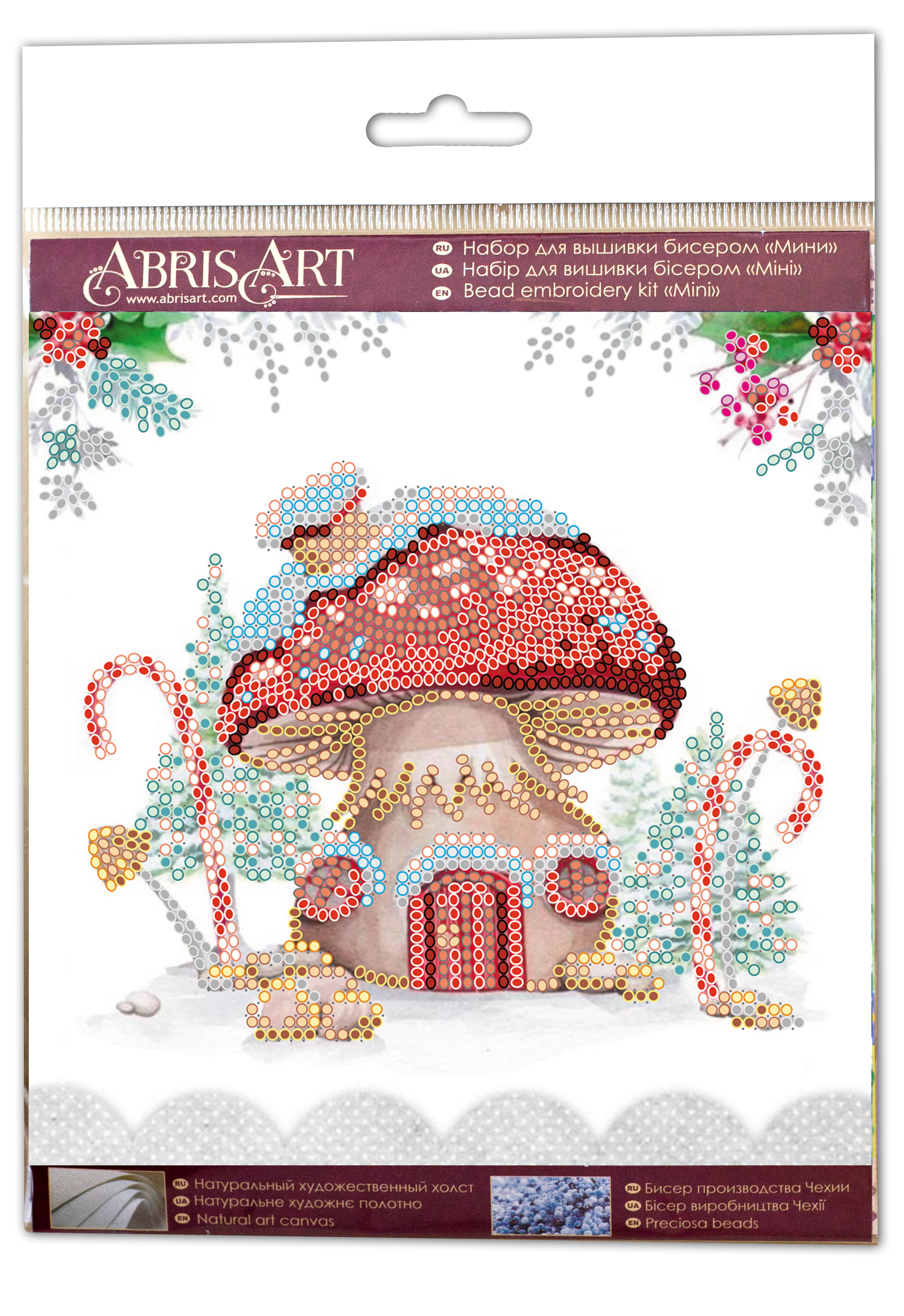 У комплекті зазвичай є натуральний холст із нанесеною схемою, чеський бісер Preciosa Ornela, бісерні голки та зрозуміла покрокова інструкція — усе, що потрібно навіть початківцю.