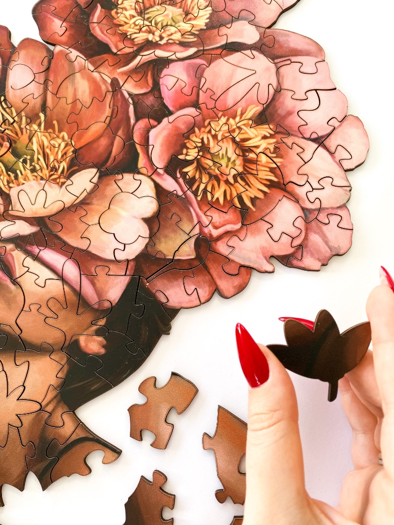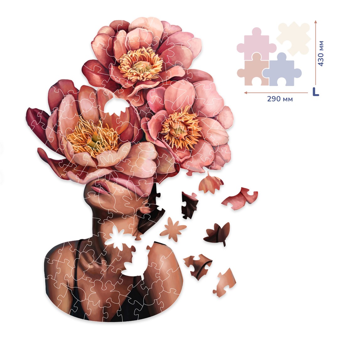Дерев'яні пазли Дівчина в квітучих півоніях (Розмір L) BP08L