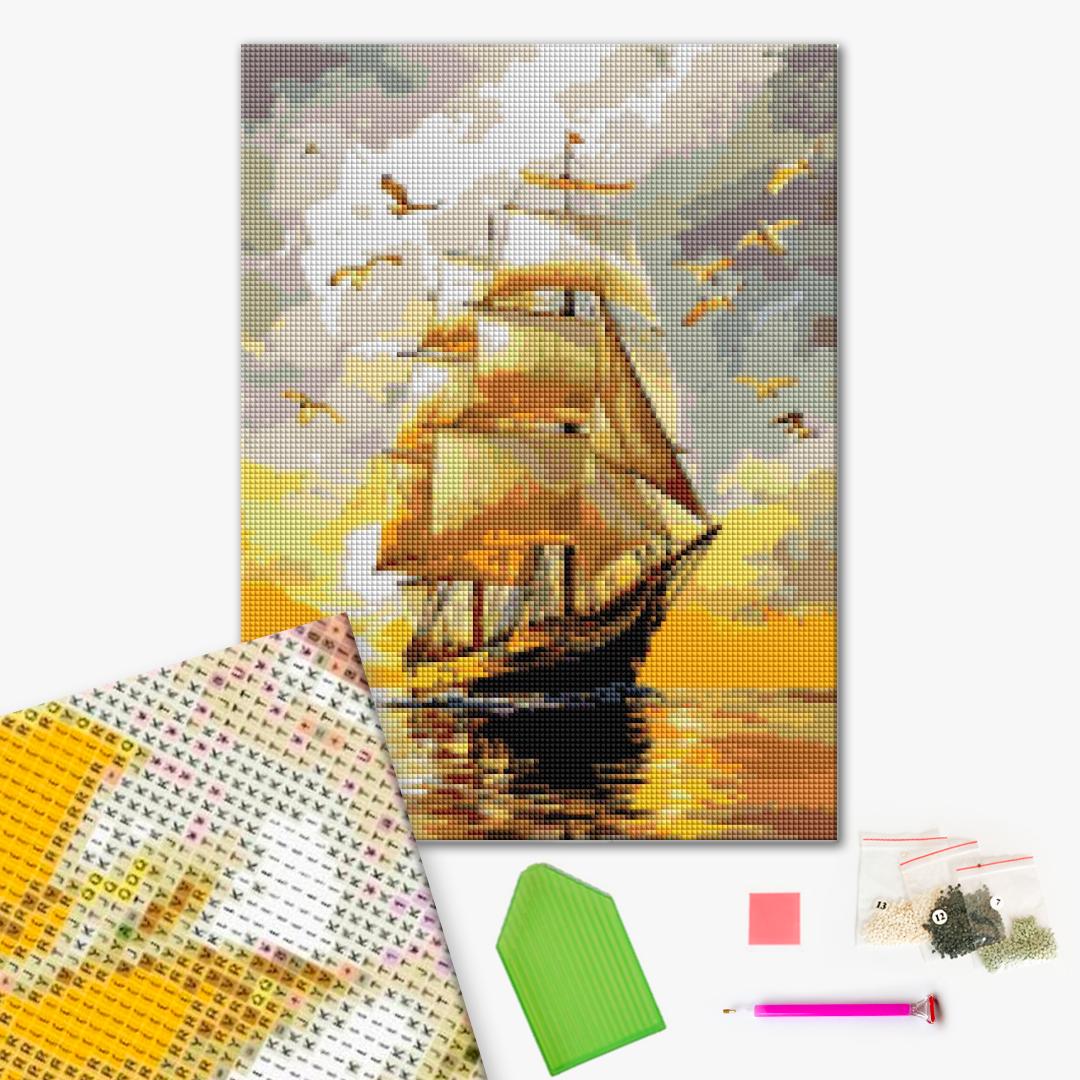 Алмазна мозаїка Вітрильник на красивому заході сонця DRBS1255